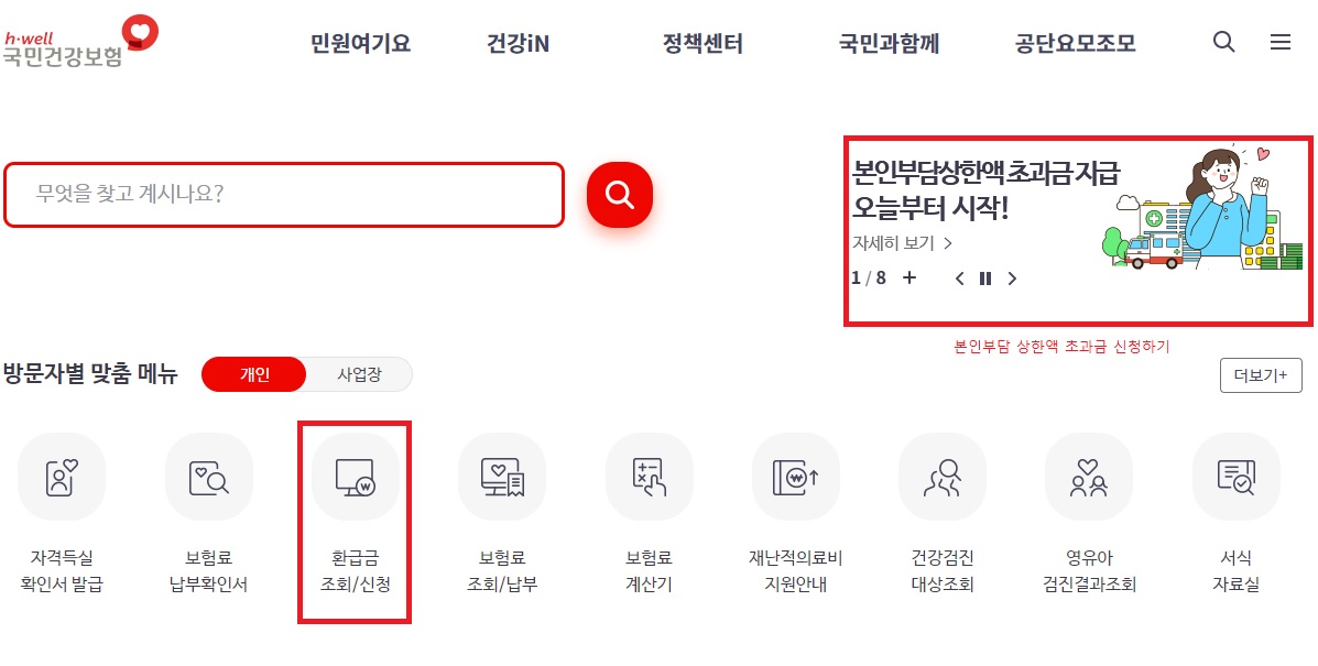 보험료 환급금 조회 및 신청은 국민건강보험 홈페이지에서 가능하며 본인부담상한액 초과금 지급도 오늘부터 시작하니 해당되시는 분들은 확인해 보시길 바랍니다.