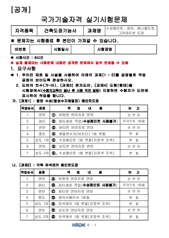 - 시험과목 : 실기 건축도장 작업