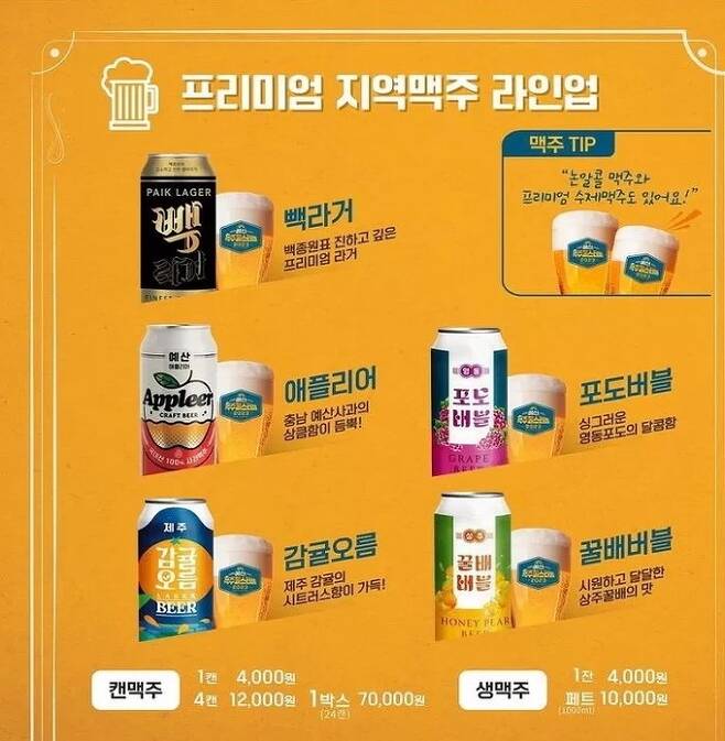 백종원대표가 지역 활성화에 동참하기 위하여 충남 예산사과를 이용하여 만든 수제맥주입니다.