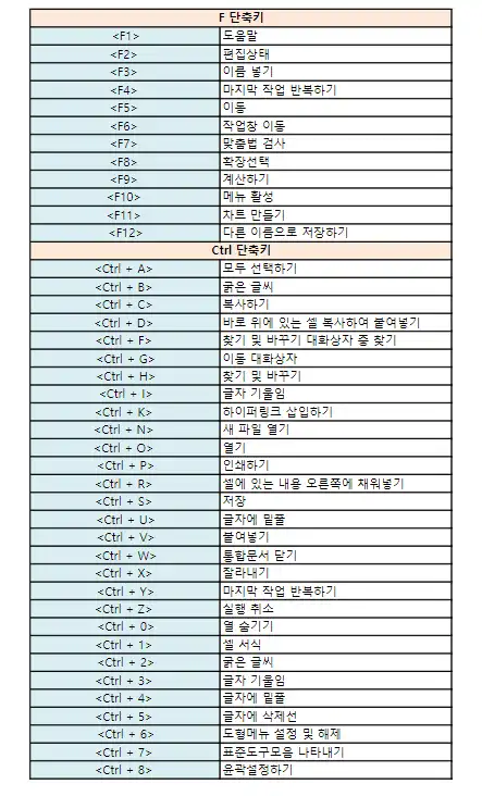 이상으로 엑셀 단축키 모음 파일 및 작업별로 정리해 보았습니다. 이외에도 단축키 모음파일에 더 많은 단축키가 포함되어 있으니 필요하신 분께서는 다운로드하여 사용하시고 단축키만 잘 활용해도 엑셀 작업 능률을 더욱 높일 수 있으니 참고하시기 바랍니다.