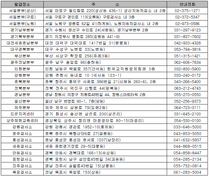 - 준비물 : 운전면허증(모바일 운전면허증 제외), 6개 워 이내 촬영한 3.5*4.5cm 컬러사진