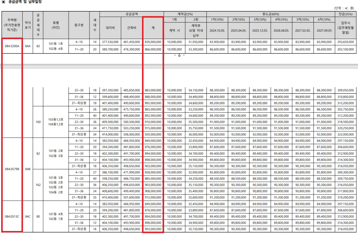 ▶힐스테이트 문수로 센트럴 84C 타입 분양가