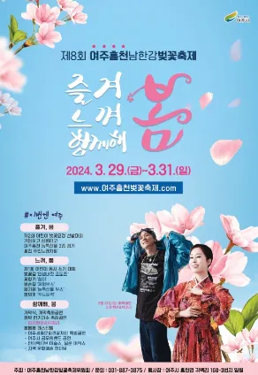 ✅ 남한강의 수려한 자연과 아름다운 벚꽃이 어우러져 환상적인 경관을 자랑하는 여주 남한강변 벚꽃 길에서 열리는 축제입니다.